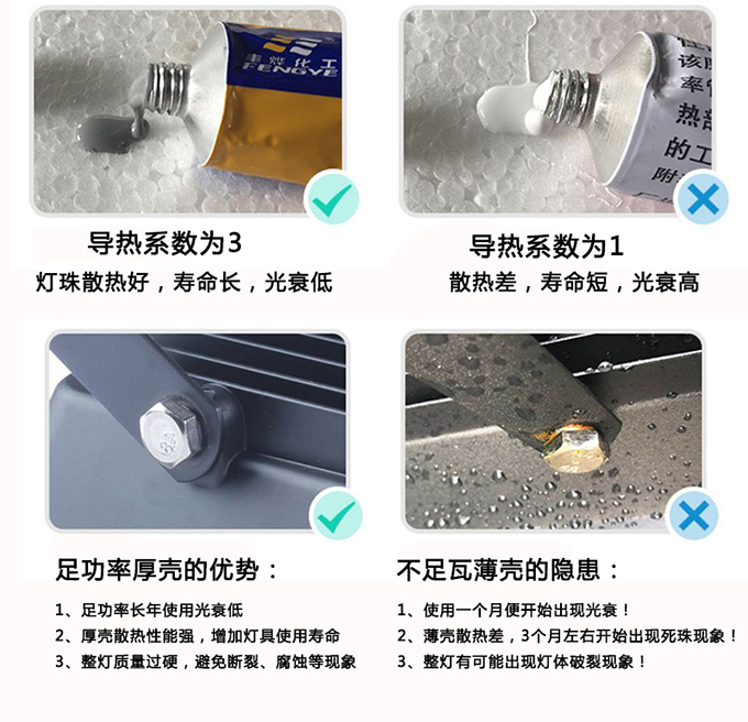 1.光源采用進(jìn)口LED投光燈COB光源,高亮度,壽命長(zhǎng),通透率高,顏色純正無(wú)頻閃。大功率2.外殼采用加高加厚優(yōu)質(zhì)航空鋁材散熱鋁材,大幅度提升LED投光燈散熱性能。