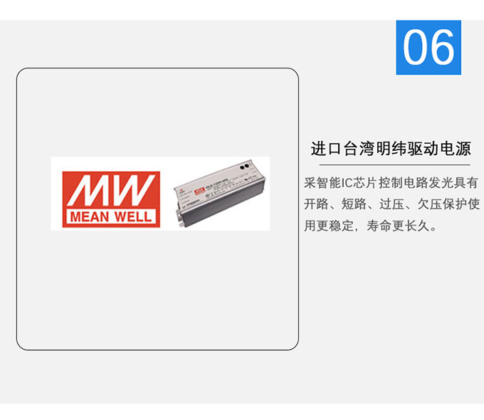 4.采用LED投光燈大功率專用定制電源,抗浪涌,高PF,寬壓,無(wú)頻閃