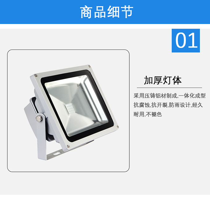 1.采用壓鑄鋁材制成,一體化成型抗腐蝕,抗開裂,防雨設(shè)計,經(jīng)久耐用,不褪色